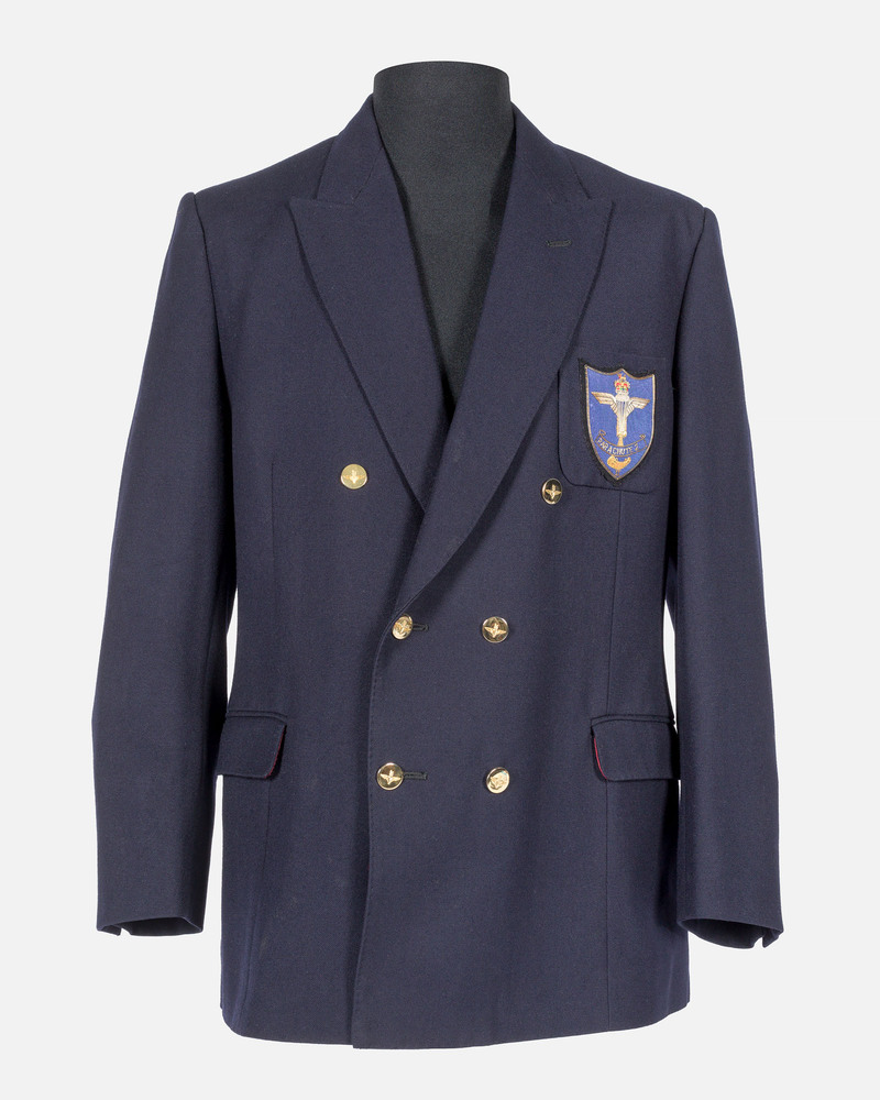 Donkerblauw colbertjasje gedragen door L.F. Ansell