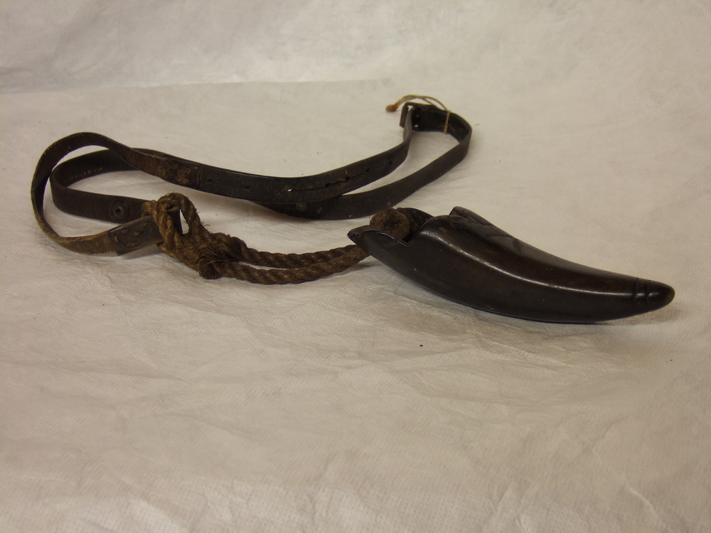 vethoorn van hoorn met lederen riem, geassocieerd me...