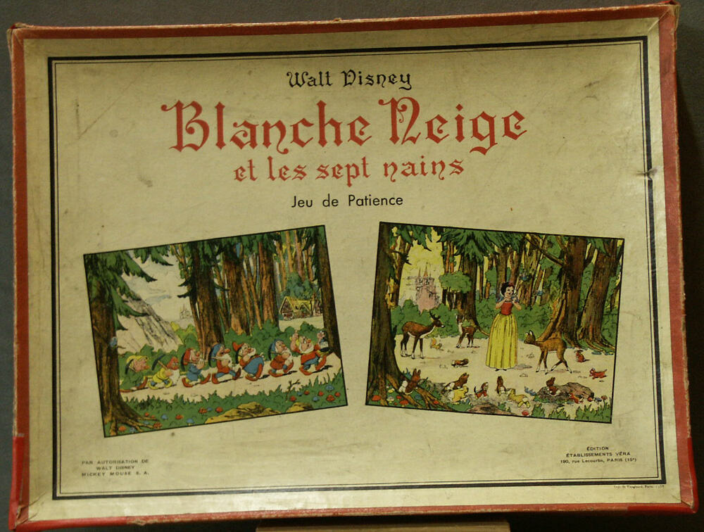 Puzzel, papier op triplex met voorstellingen van Sne...