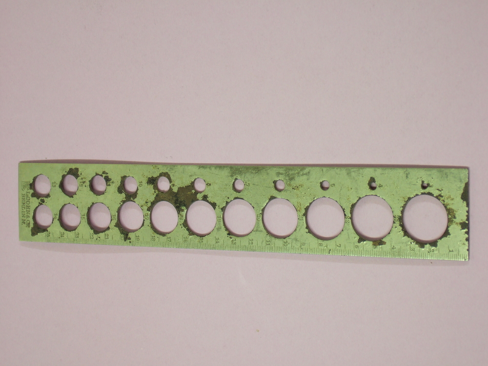 voorraadblik, rood gelakt met cijfer 5, circa 1900