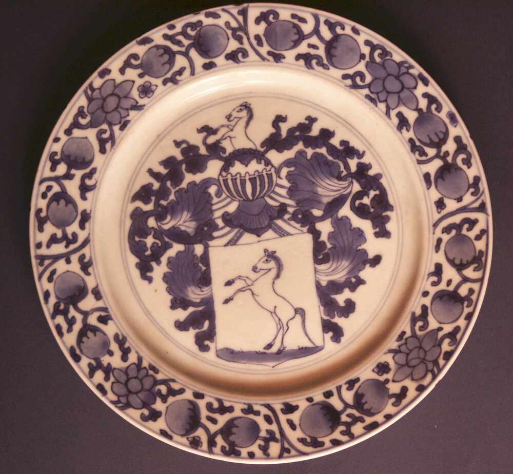4 porseleinen Chine de Commande wapenborden.