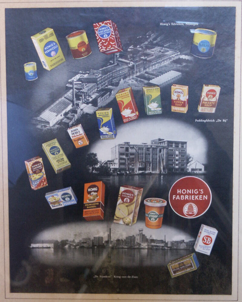 reclameplaat van Honig's fabrieken, papier op hout, ...