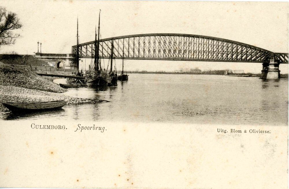 Ansichtkaart, voorstellende de spoorbrug te Culembor...