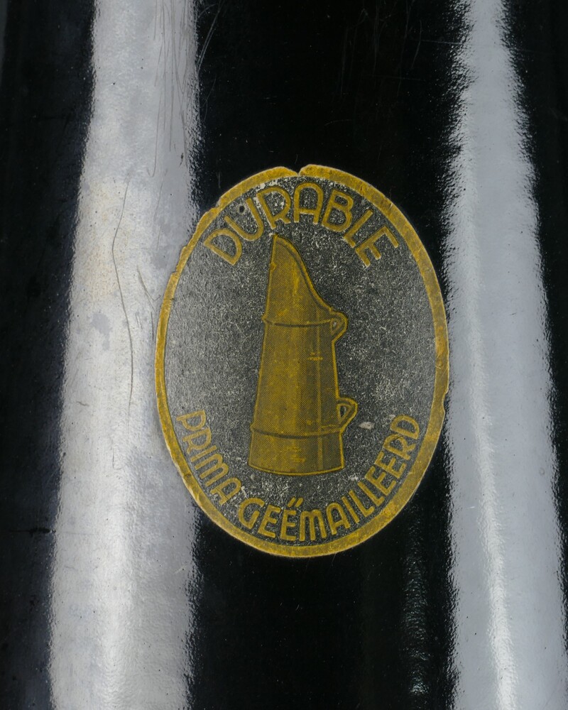 Kolenkit van zwart geëmailleerd metaal.