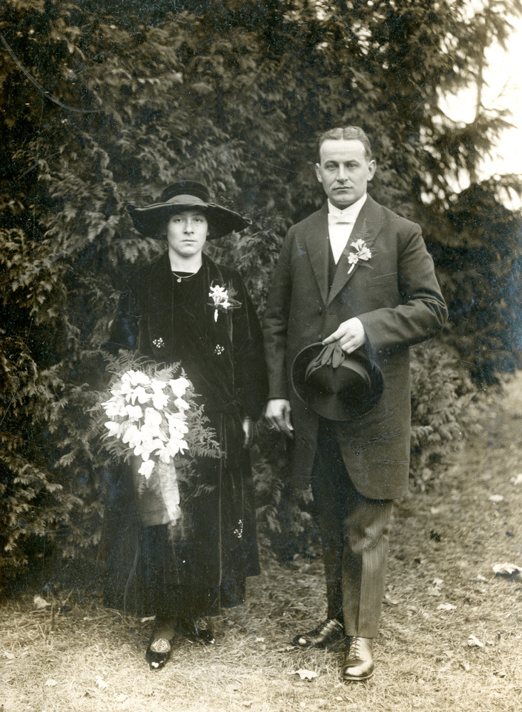 Zwart-wit foto van het bruidspaar Steentjes uit Pann...