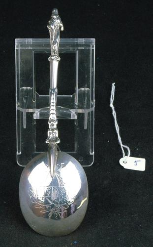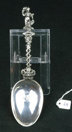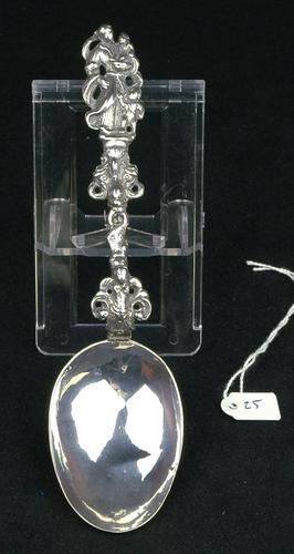 Huwelijkslepel van zilver bekroond met stadhouder Wi...