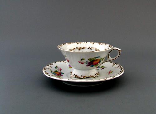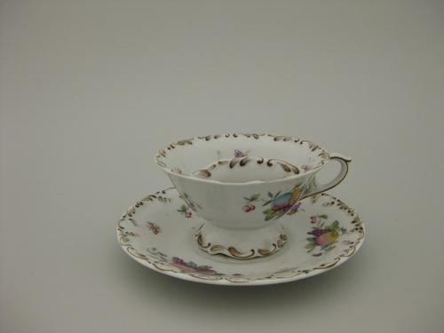 Twee porseleinen kop en schotel. Verguld en met bloe...
