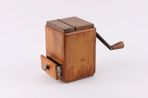 Houten koffiemolen.