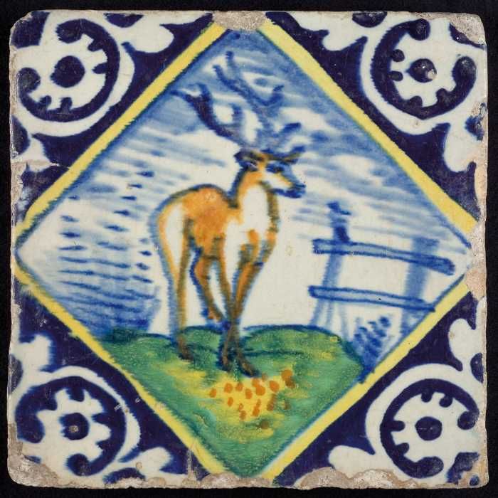 Dierentegel, veelkleurig, hert op grondje, hoekmotie...