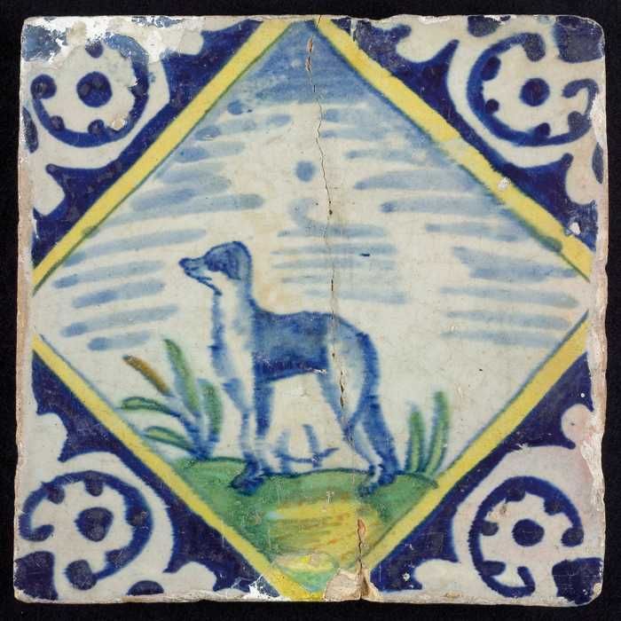 Dierentegel, blauw op wit, aap op grondje, hoekmotie...