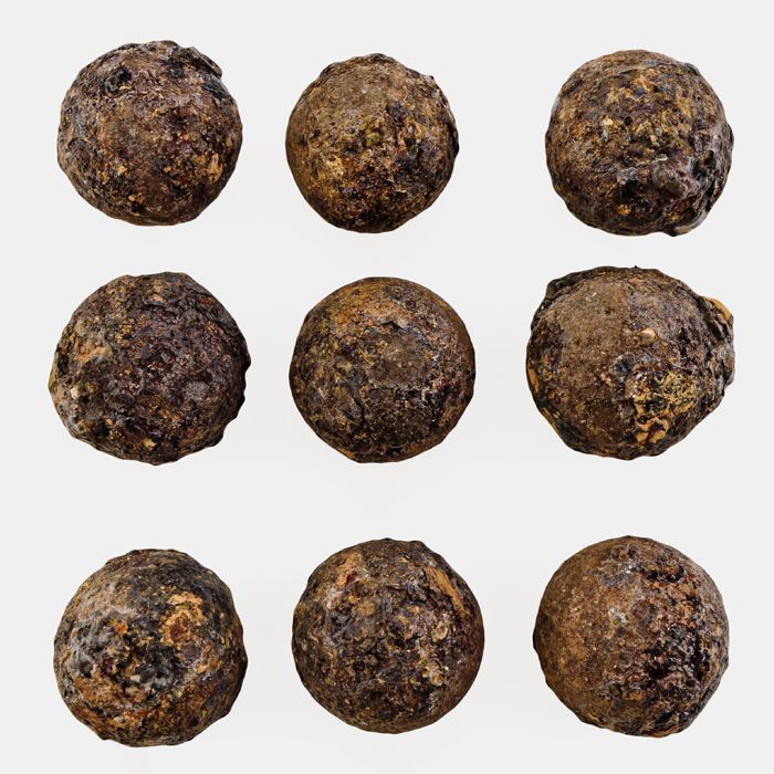 Negen ijzeren kogels, kartets, alle ongeveer even groot