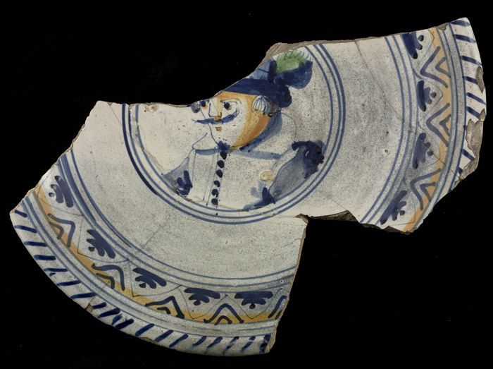 Fragment van enorme faience vaas, vrouwenkop