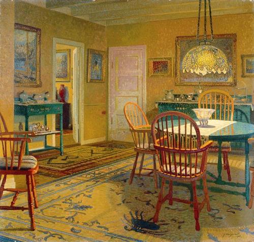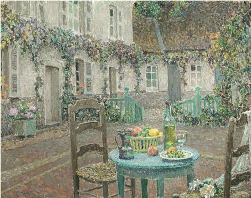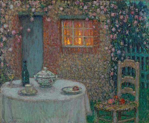 De tafel en het huis. Lichtvlekken. Gerberoy