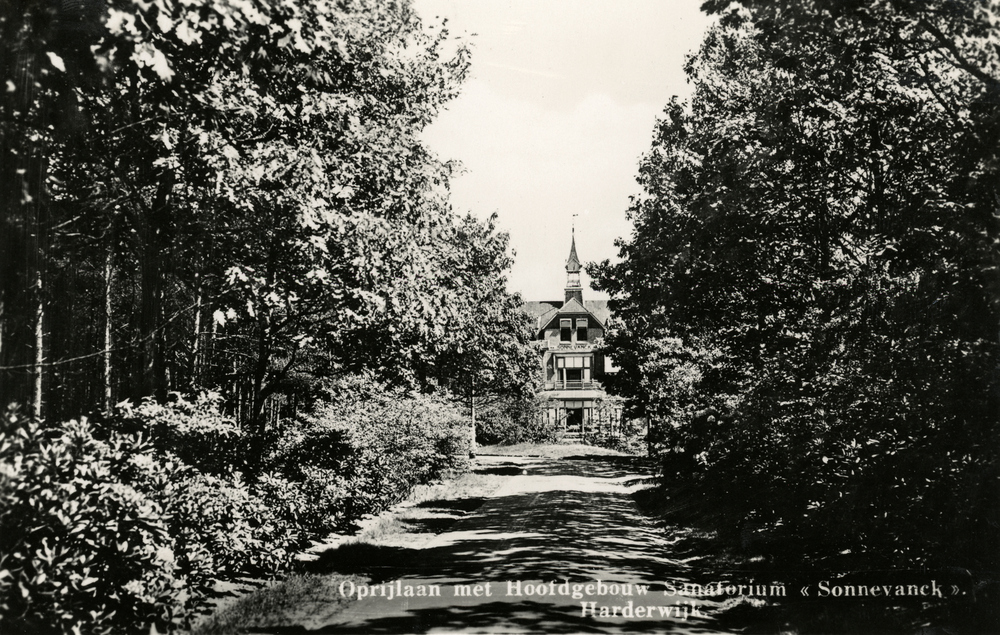 Prentbriefkaart getiteld 'Oprijlaan met Hoofdgebouw ...