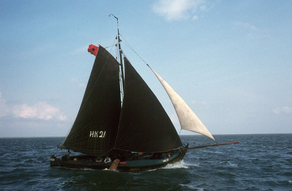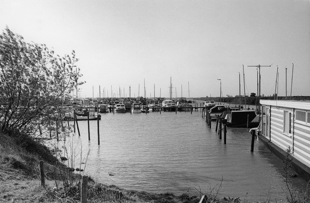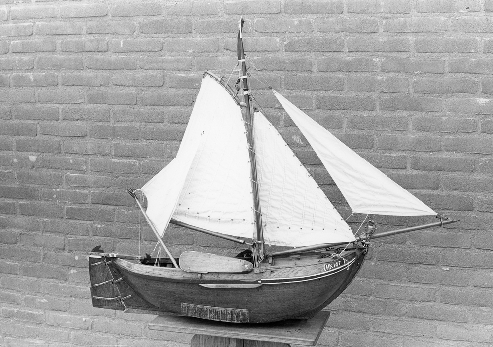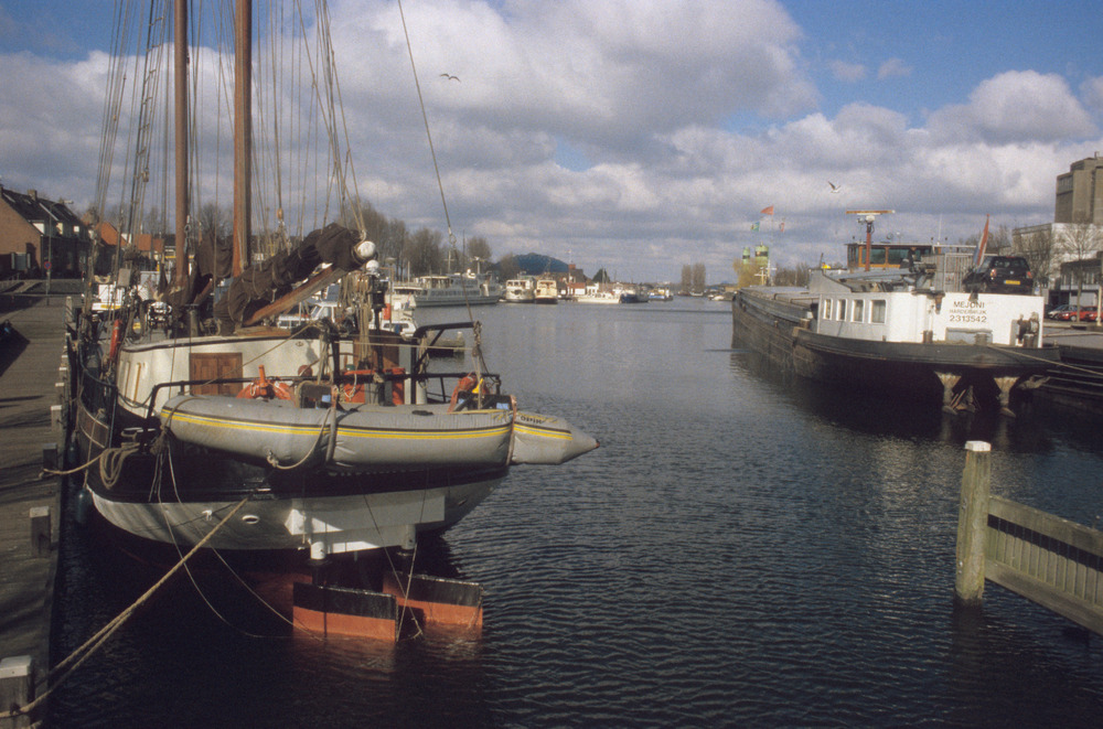Vissershaven met zeilschip, binnenvaartschip en rond...