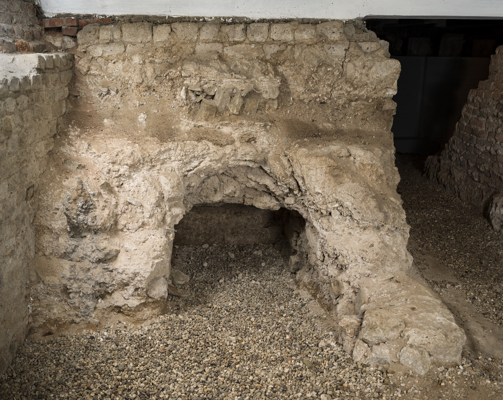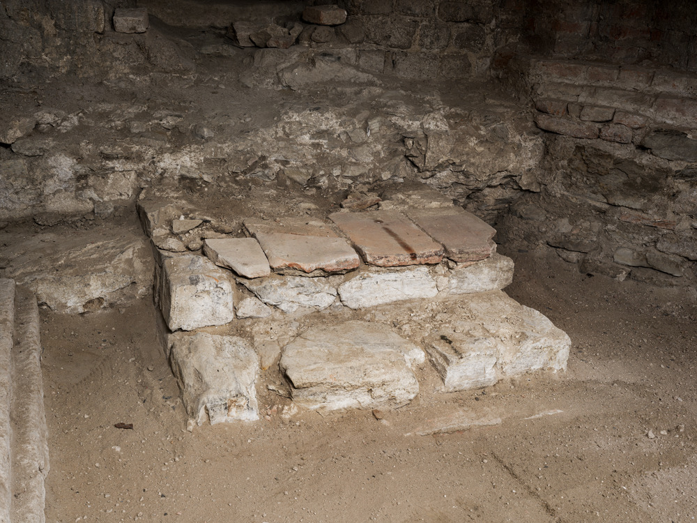 Funderingsmuur van de eerste Romeinse tempel