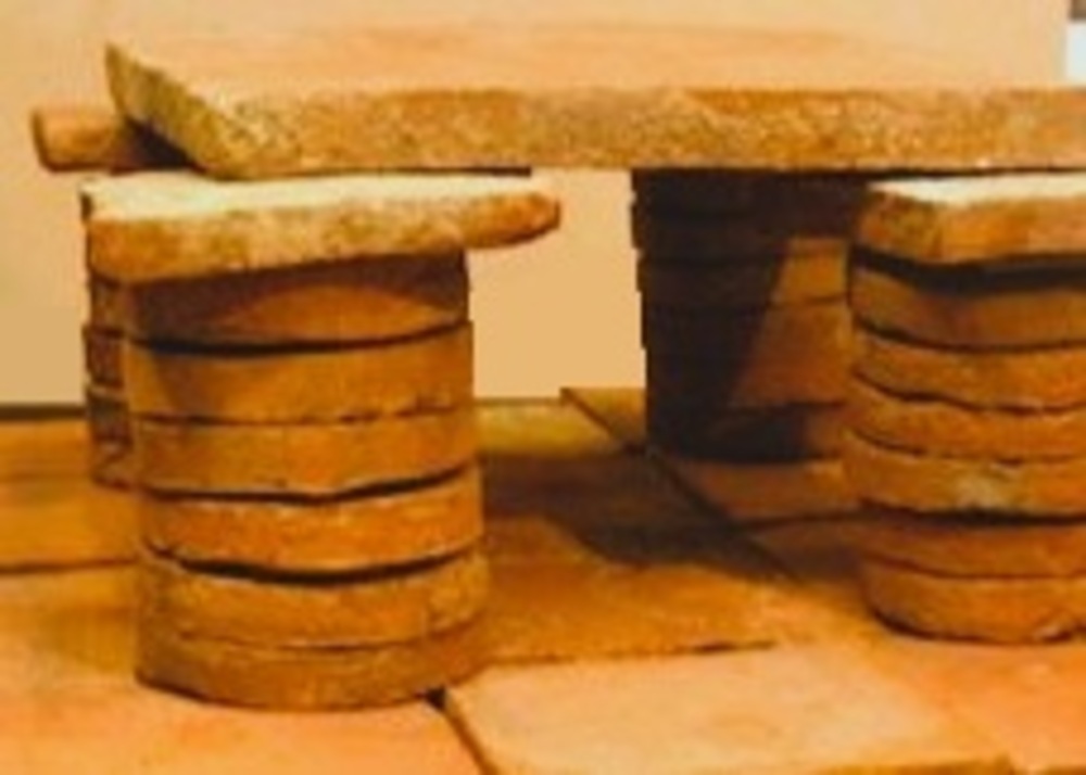 Dakpan van rode baksteen (tegula) met aan de linker ...