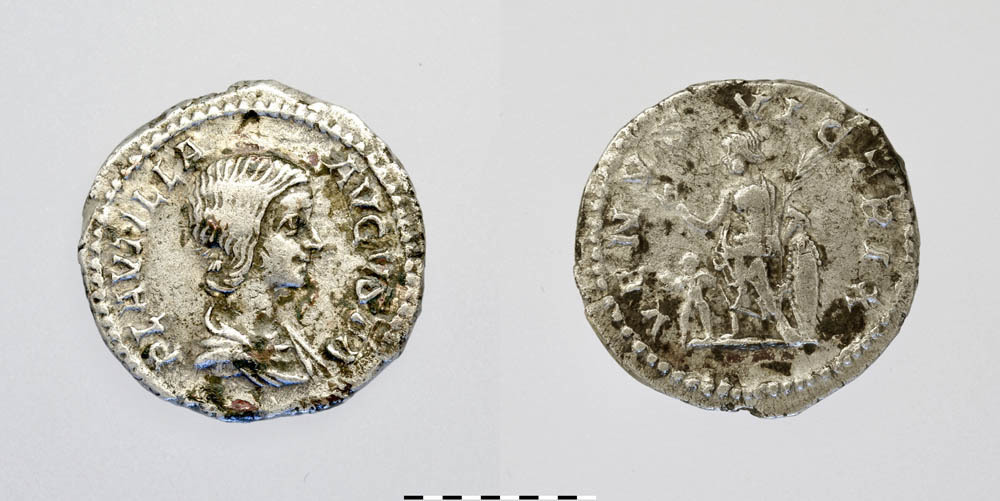 Denarius van Plautilla, munt van zilver uit de Romei...