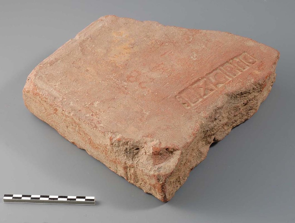Baksteen van bouwkeramiek uit de Romeinse tijd, met ...