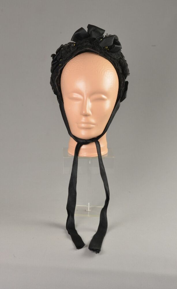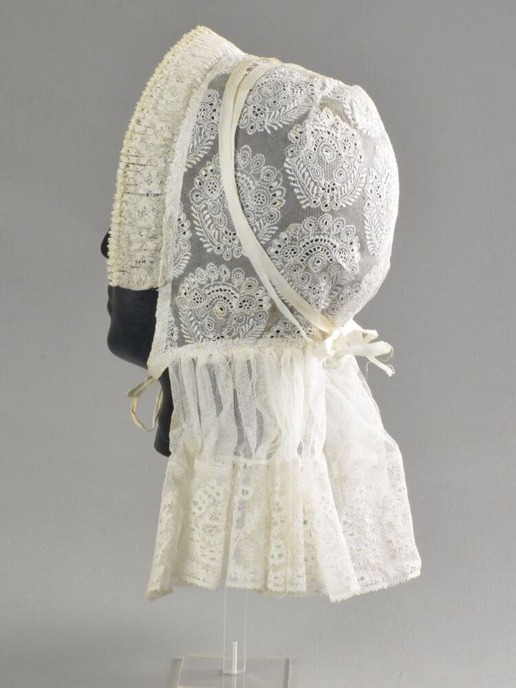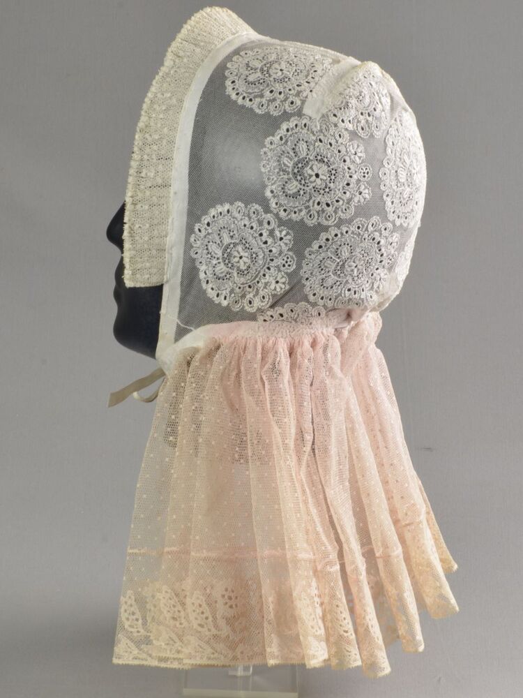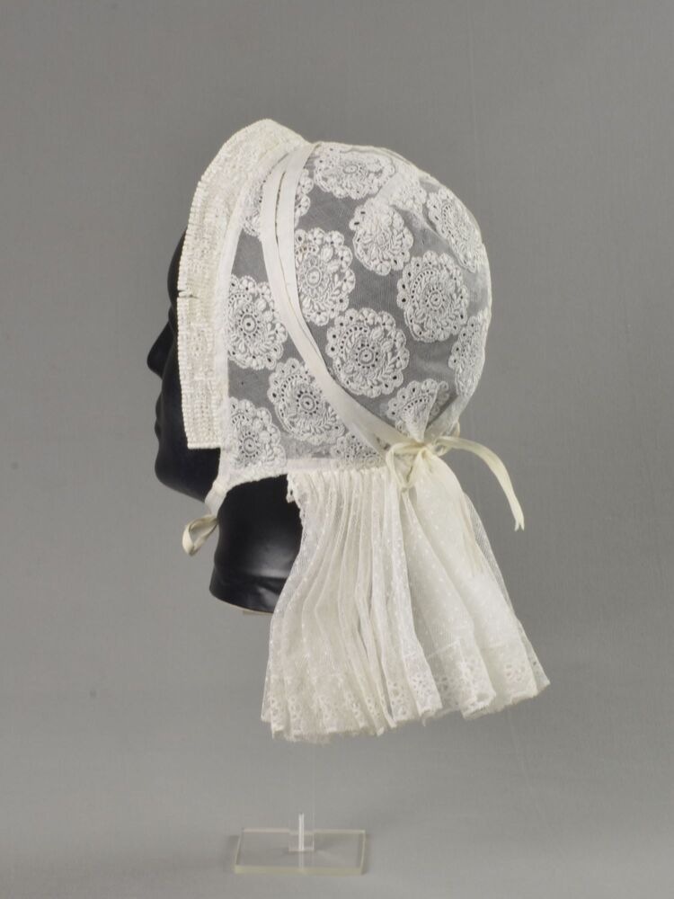 Rouwknipmuts van witte katoen, handgenaaid en in de ...