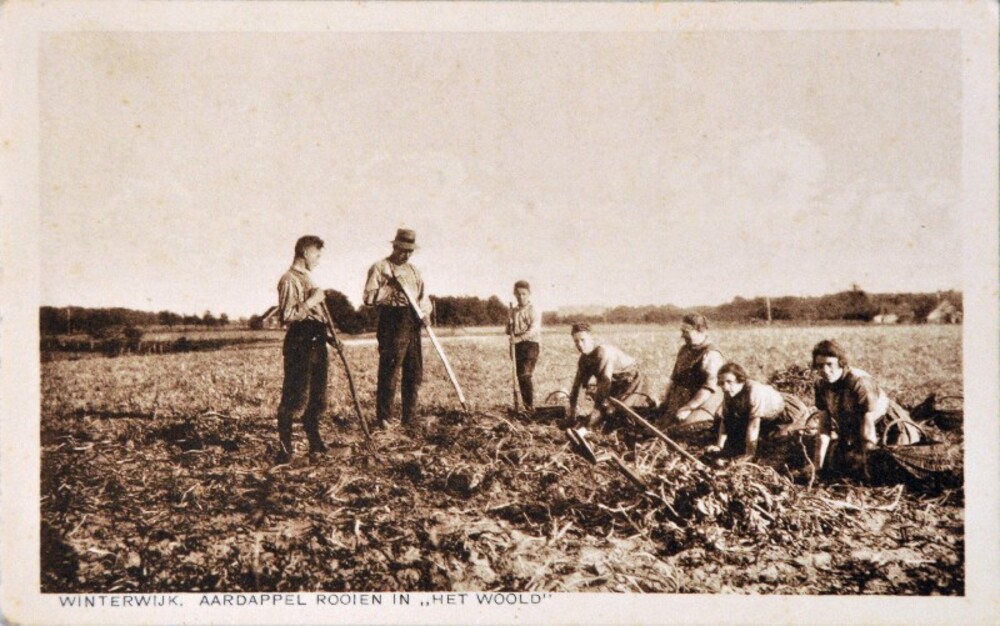 Aardappel rooien in het Woold