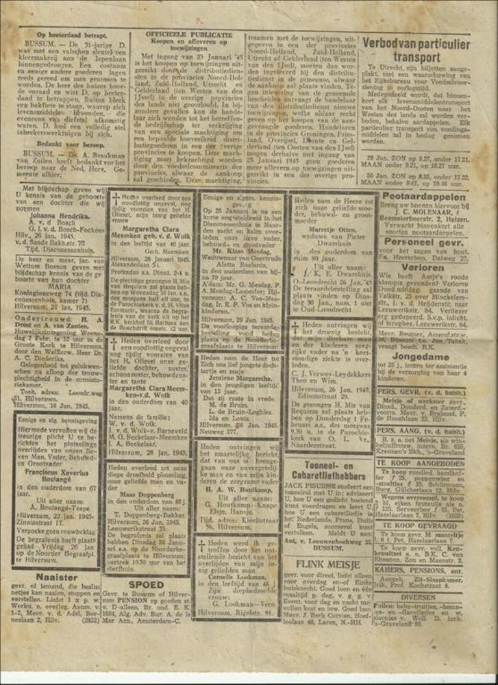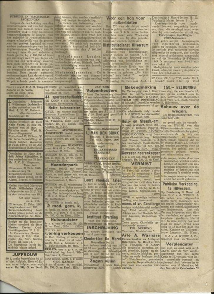Een aantal krantenknipsels uit de oorlogsperiode 194...