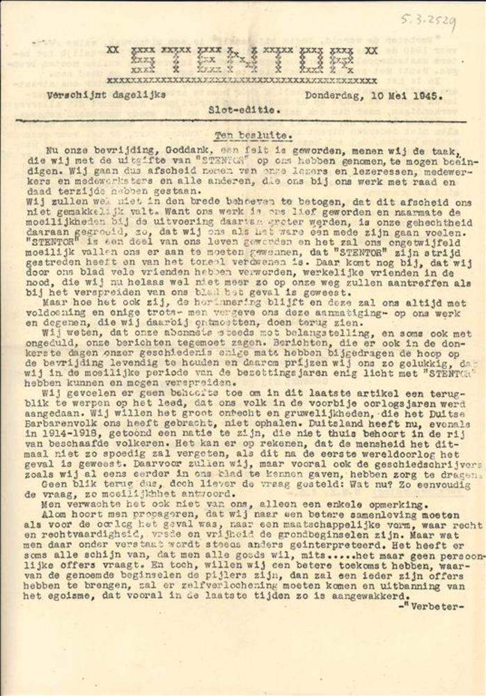 Stentor, Donderdag, 10 Mei 1945 ( slot-editie).