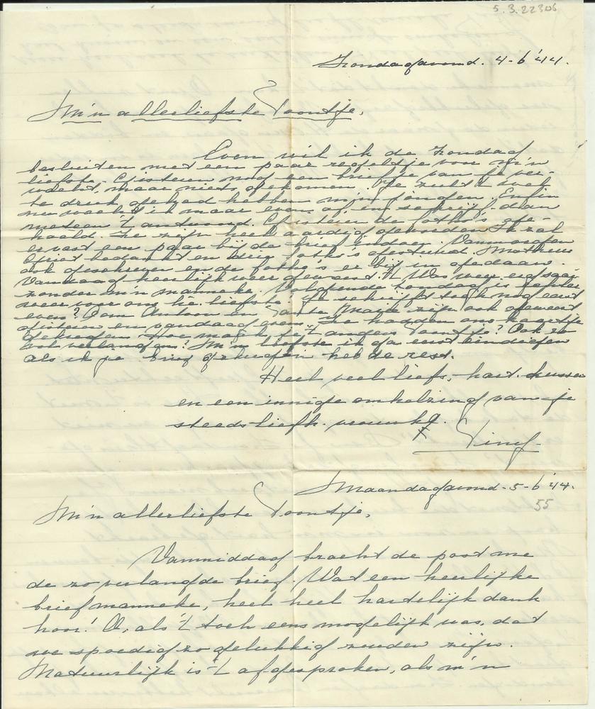 Brief van Tiny Middendorp aan verloofde, 4/5 juni 1944