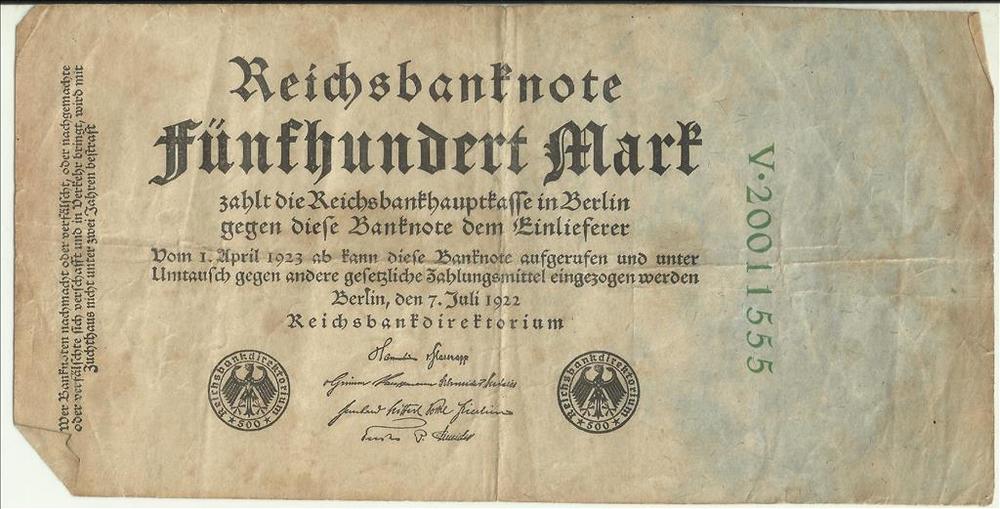 Bankbiljet, Duits, Reichsbanknote, Fünfhundert Mark,...