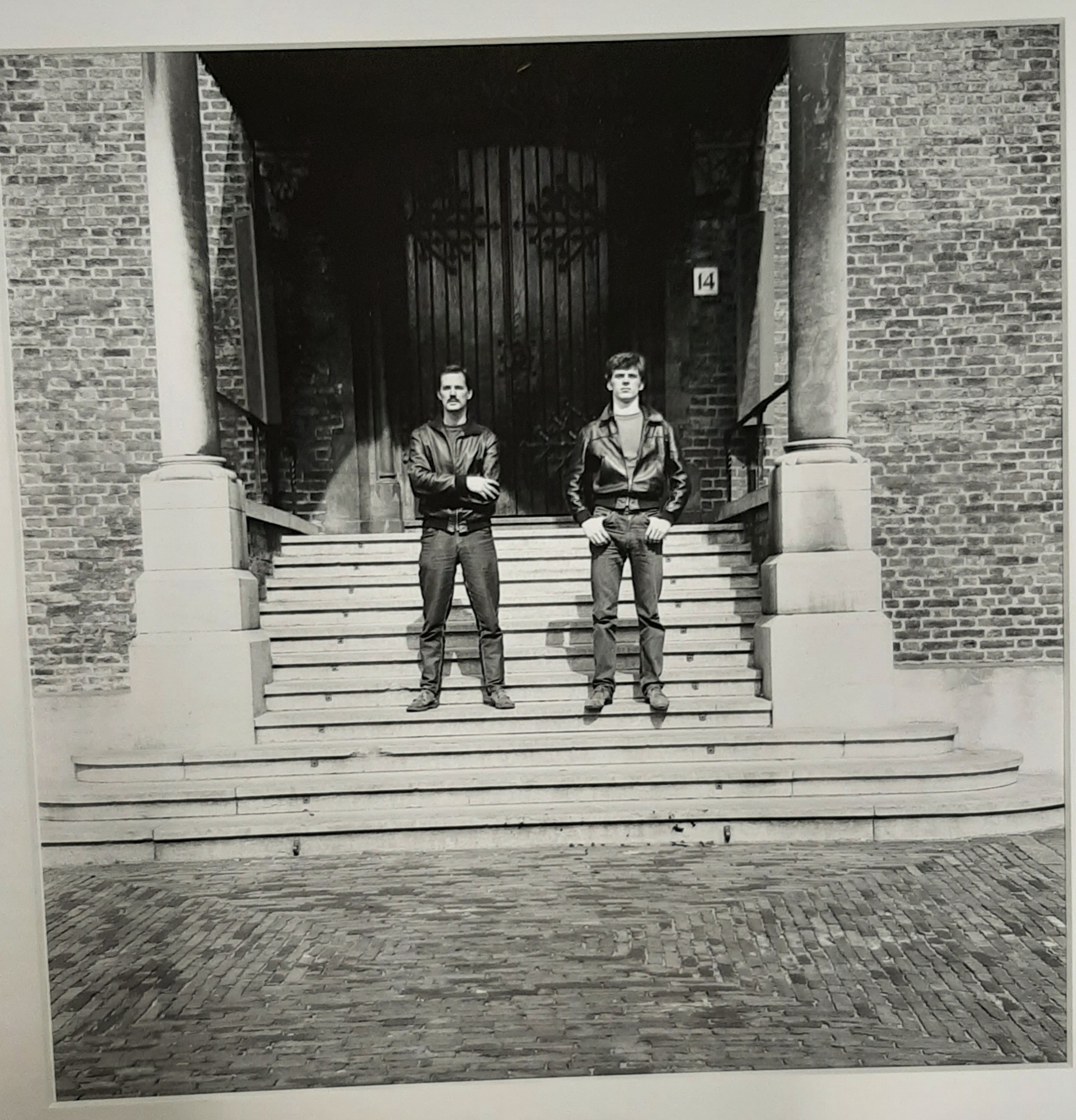 Kunstenaars Armando (links) en Jan Cremer op de trap...