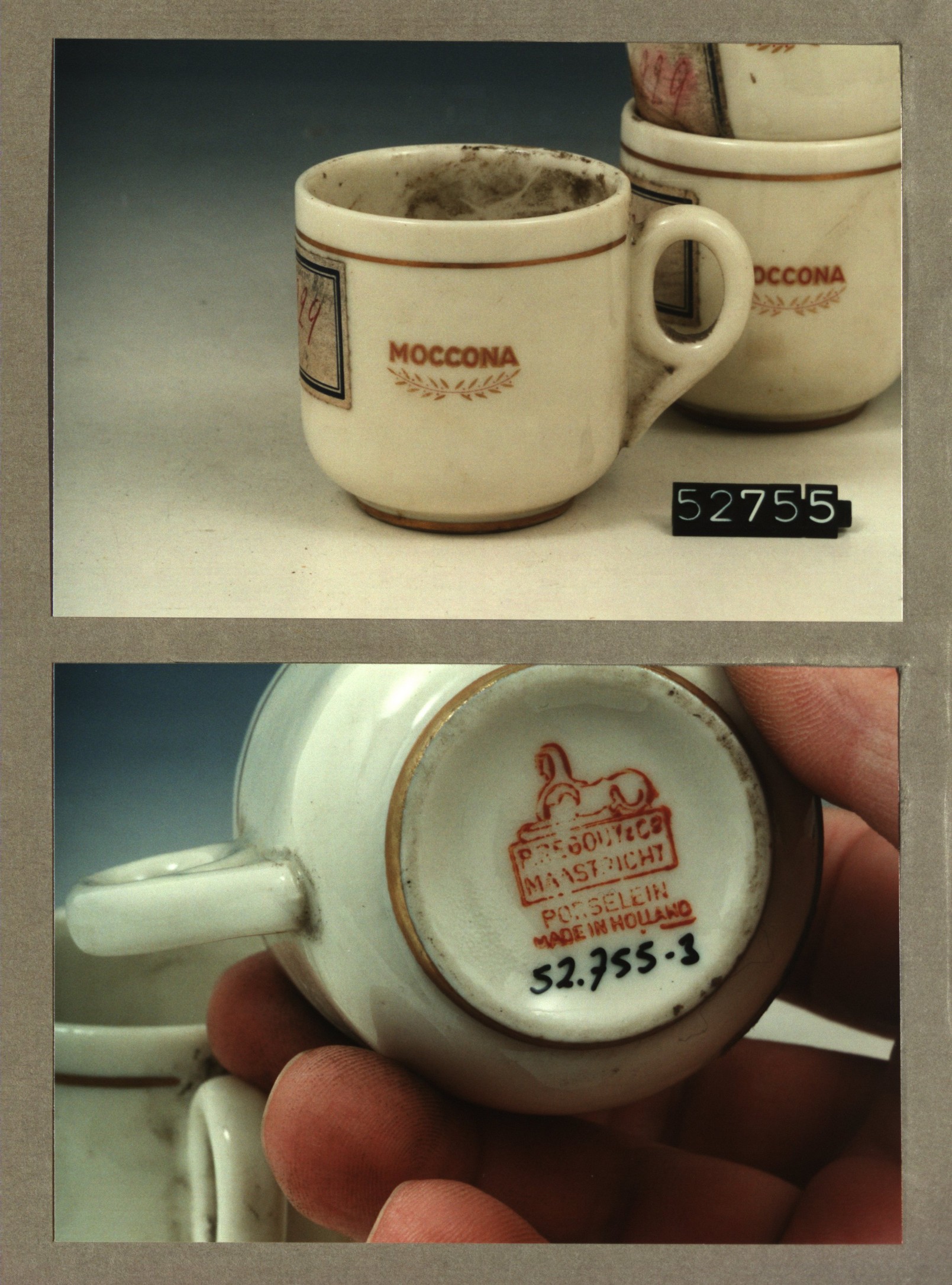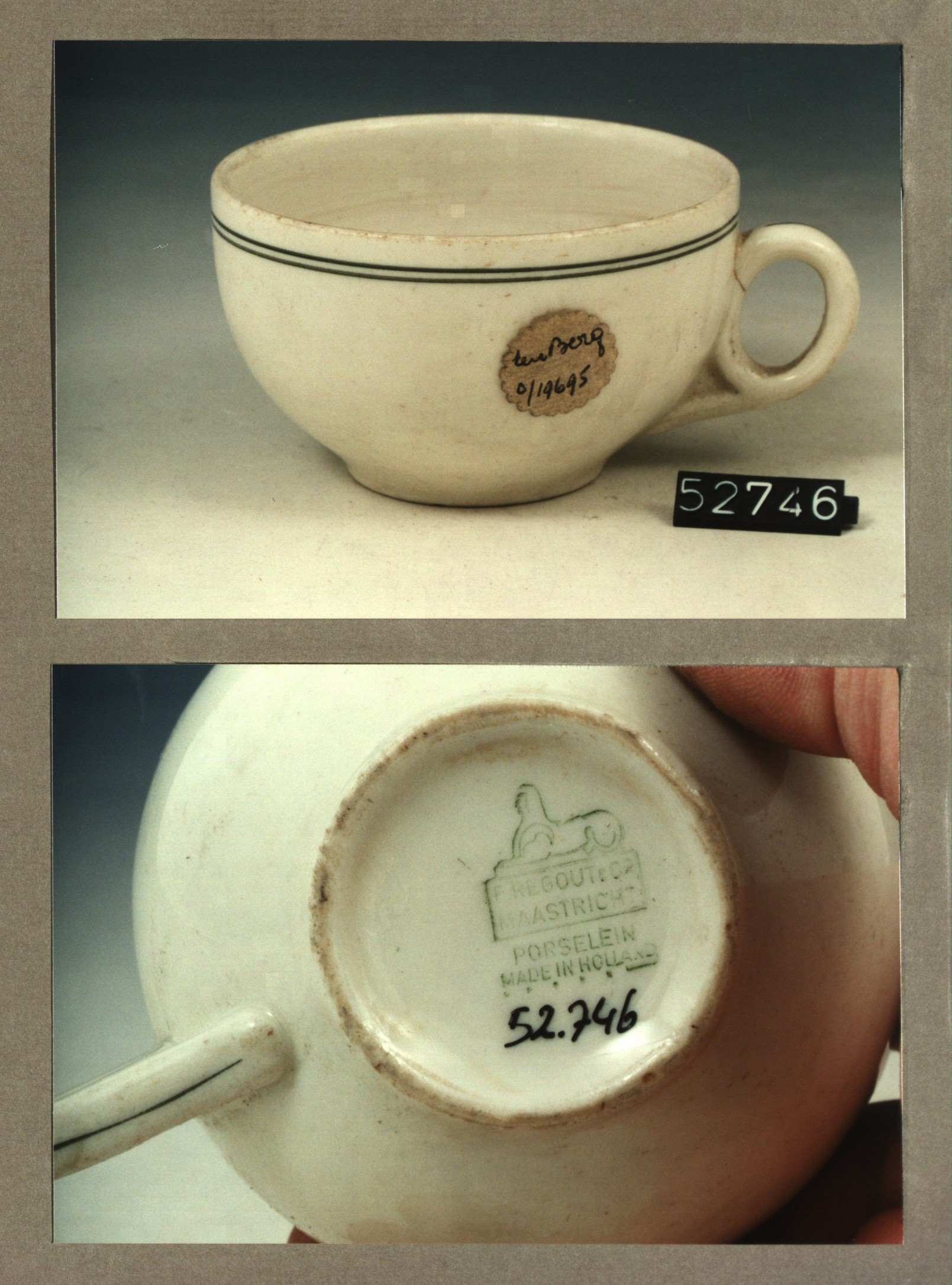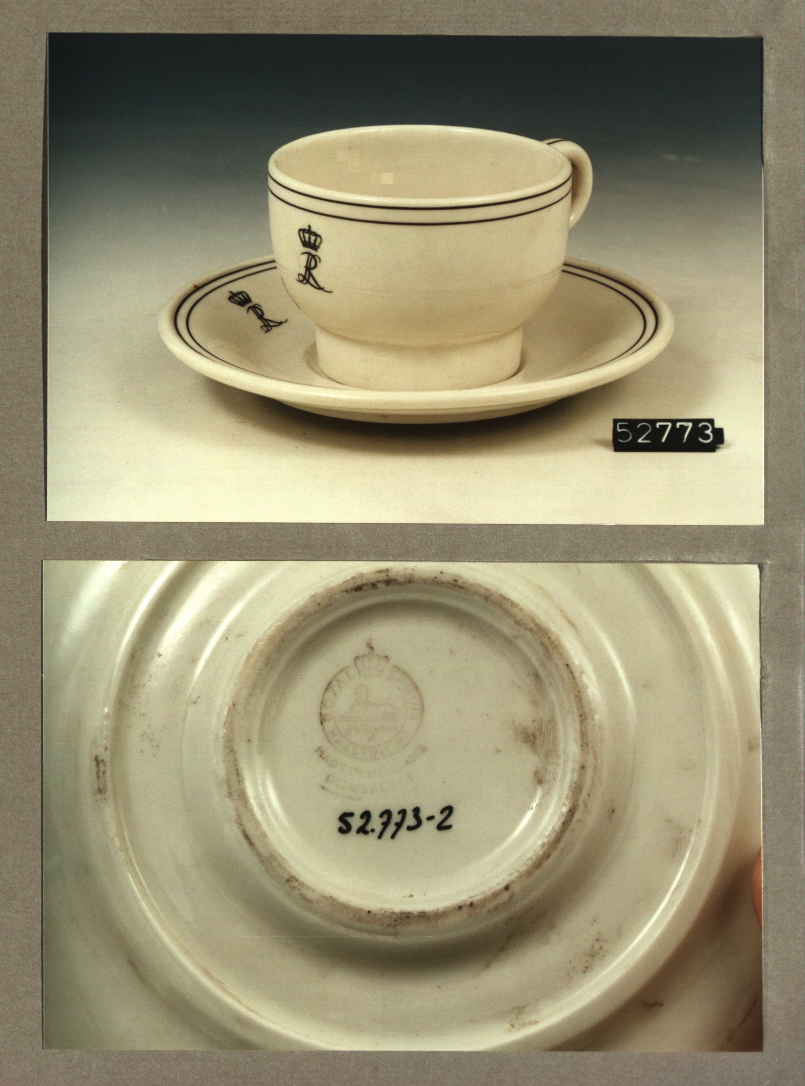 Kop met opschrift, model C.M. met decor NASM