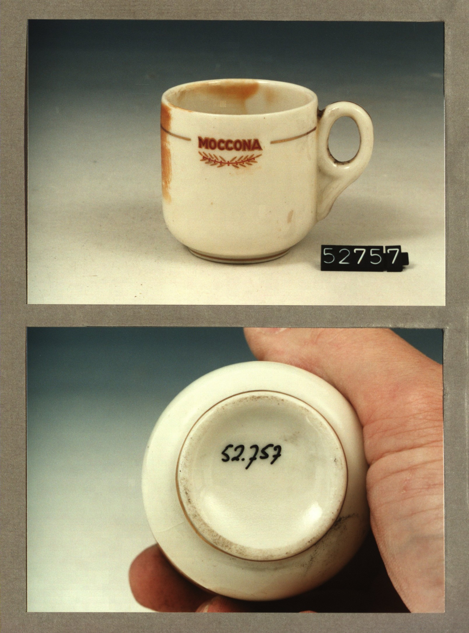 Kop met opschrift, model F met decor Moccona