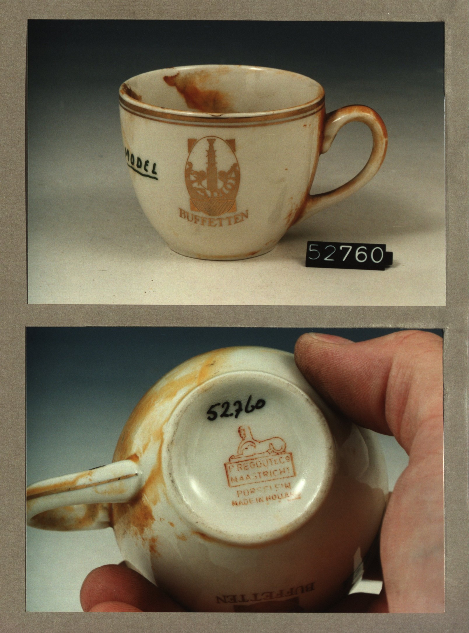 Kop met opschrift, model N met decor Stadion buffetten