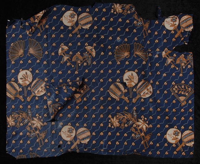 Donkerblauwe batiklap met waaiermotieven