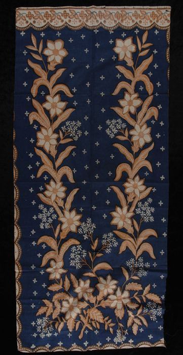 Donkerblauwe batiklap met beige bloemmotieven