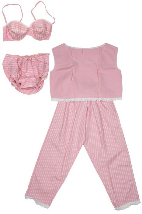 Vierdelig strandsetje: bikini, roze gestreept met wi...