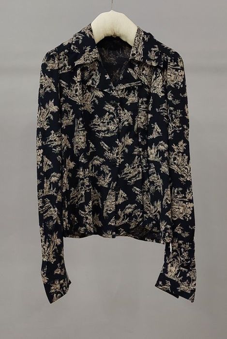 Donkerblauwe blouse met witte print