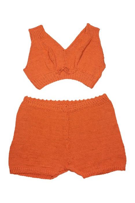 Vierdelig strandsetje: driekwart broek en hesje, roz...