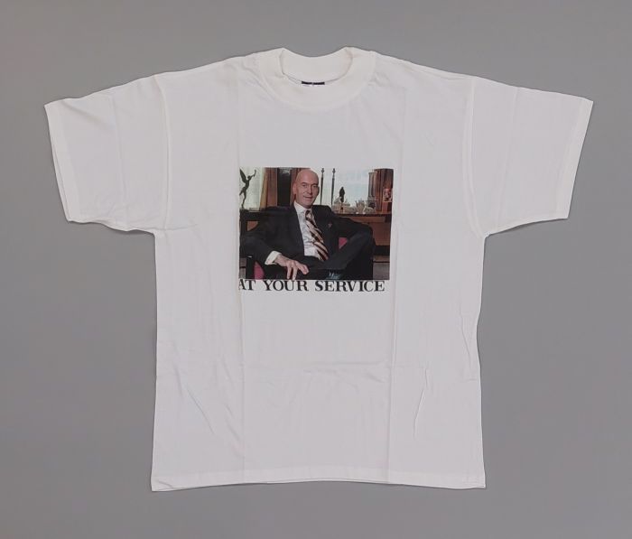 Wit t-shirt met opdruk "Is er wel zinvol geweld???" ...