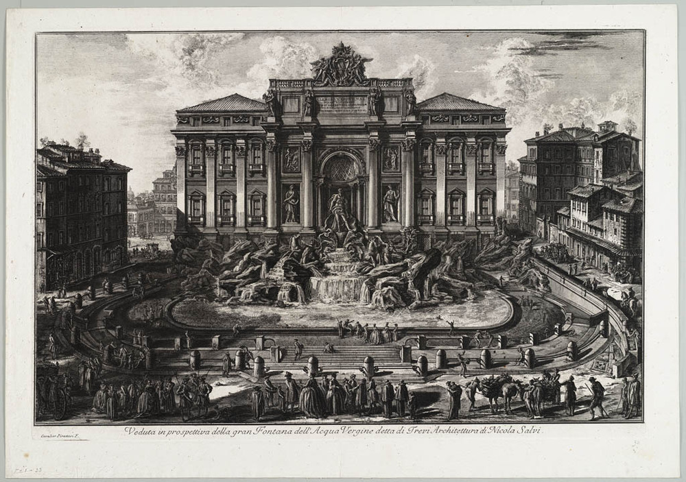 Veduta della vasta Fontana di Trevi anticamente dett...