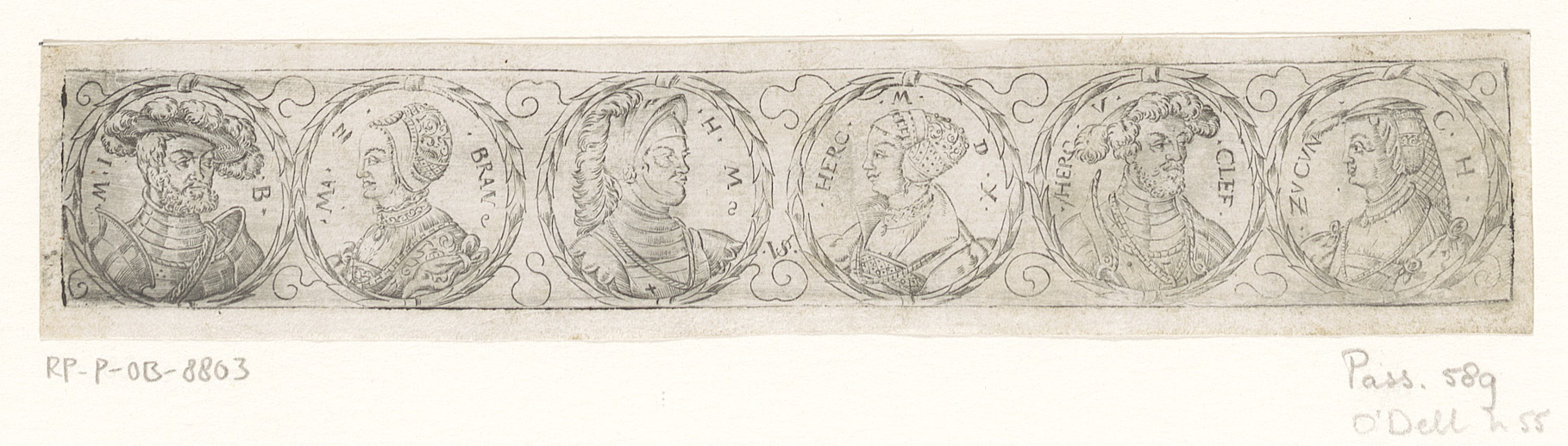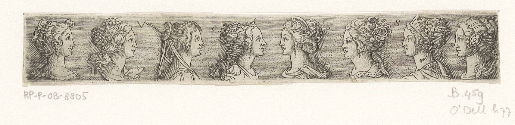Fries met tien mannelijke en vrouwelijke bustes bove...
