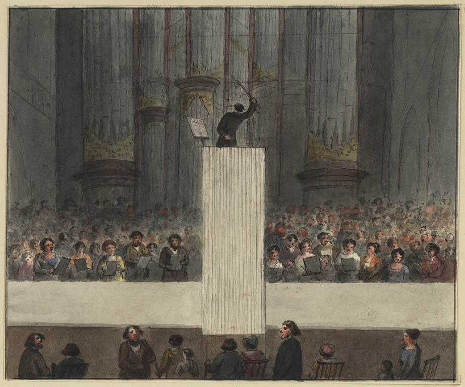 Schets van de repetitie van het muziekfeest