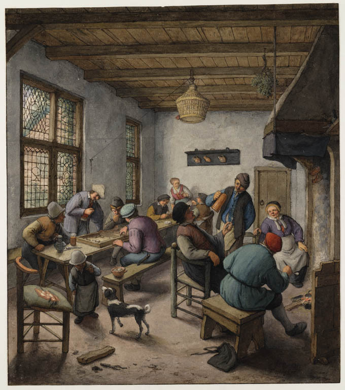Herberginterieur met triktrakspelers