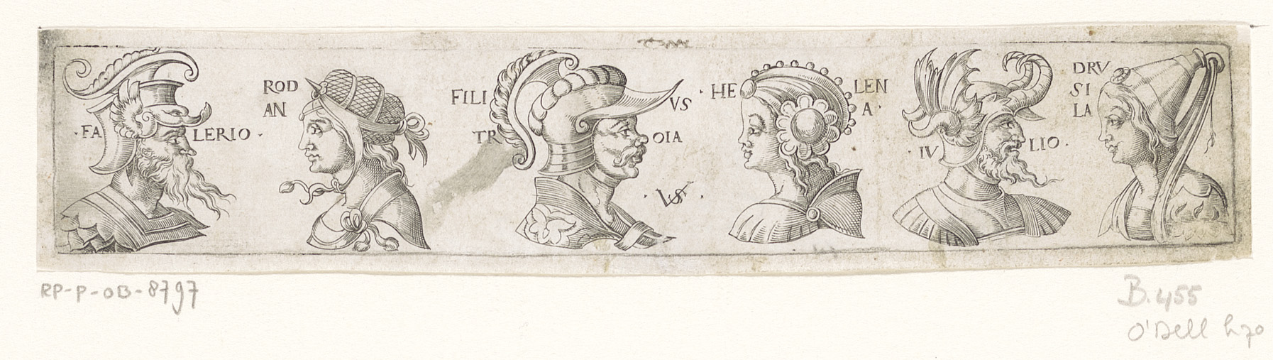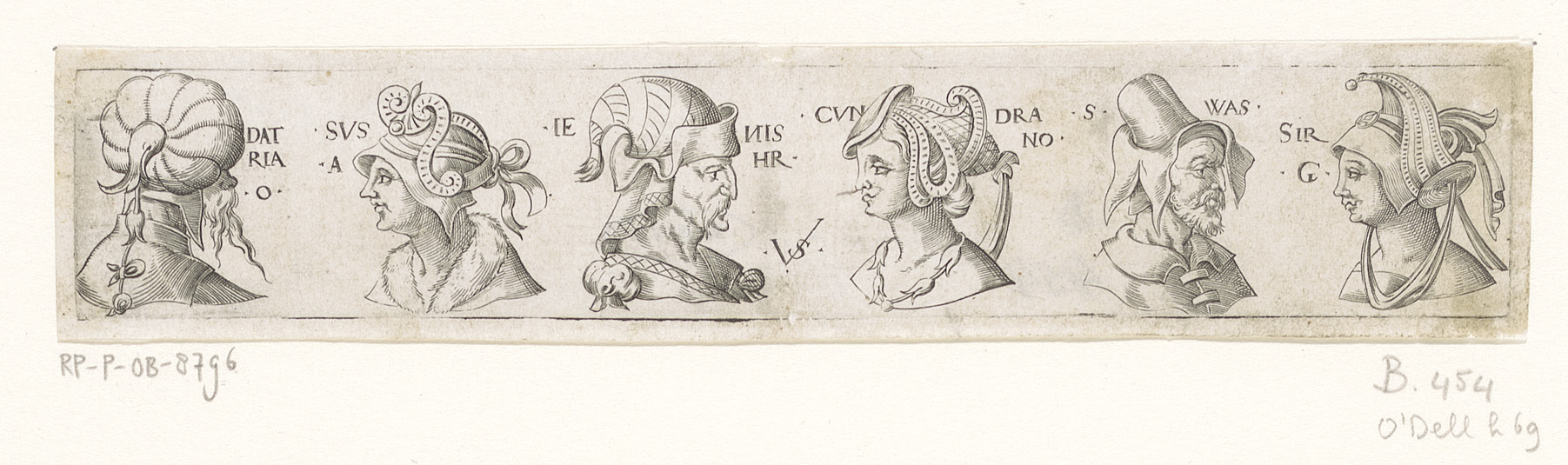 Fries met zes bustes met hoofddeksels