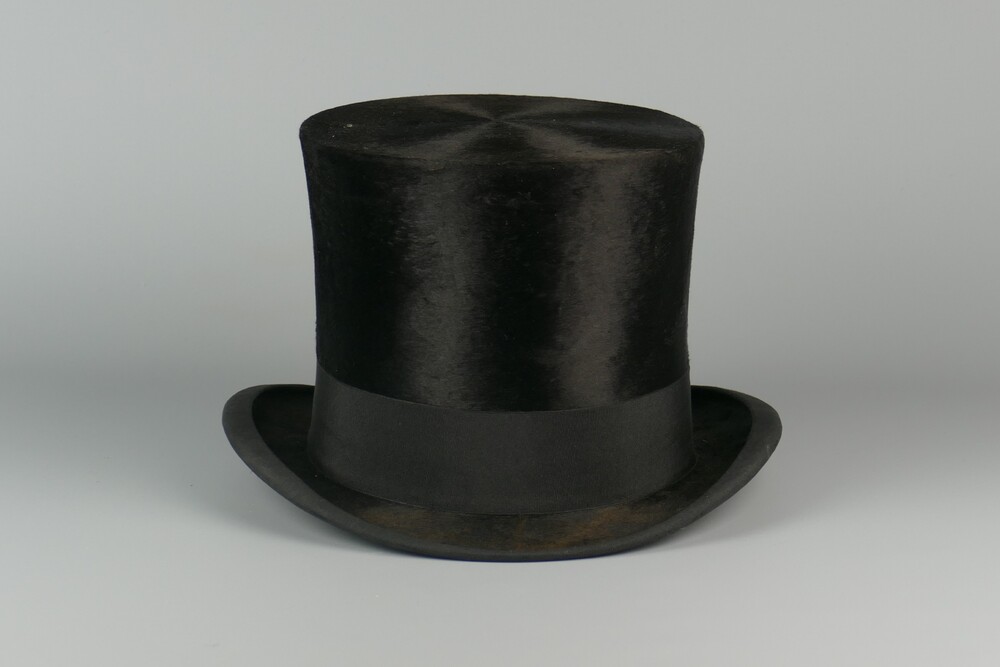 Hoge hoed van zwarte stof.