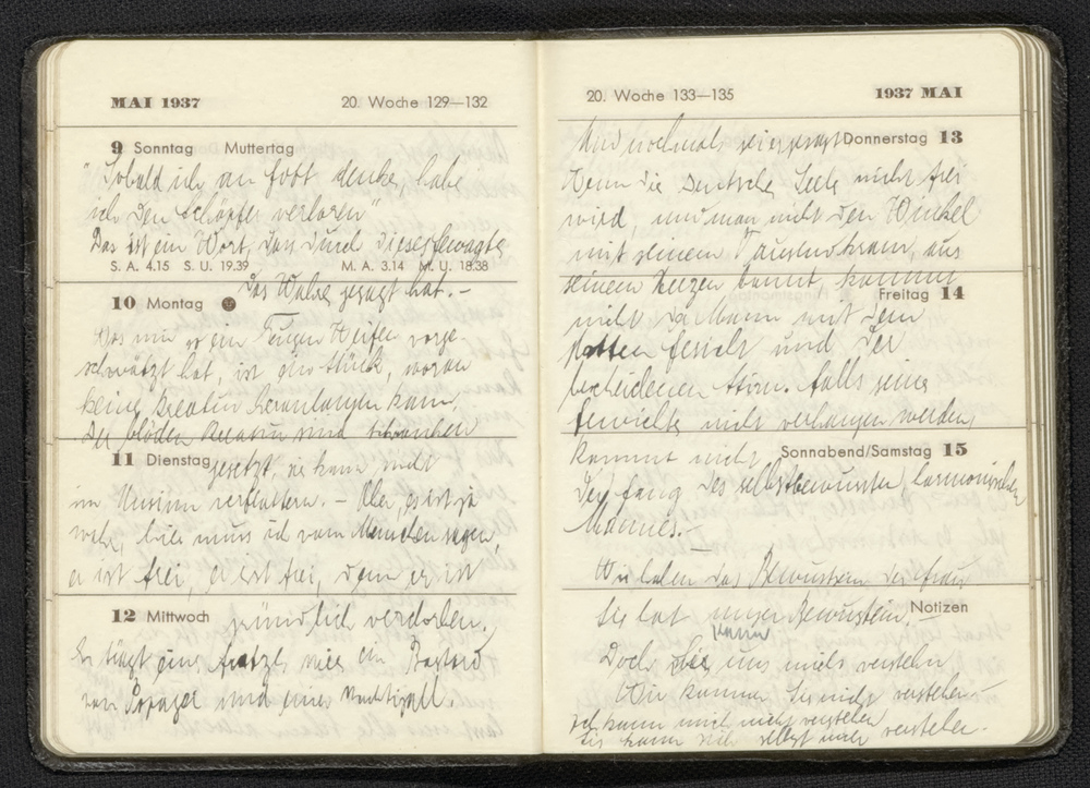 Zes boekes met dagboeknotities 1937 (Duitstalig) nrs...