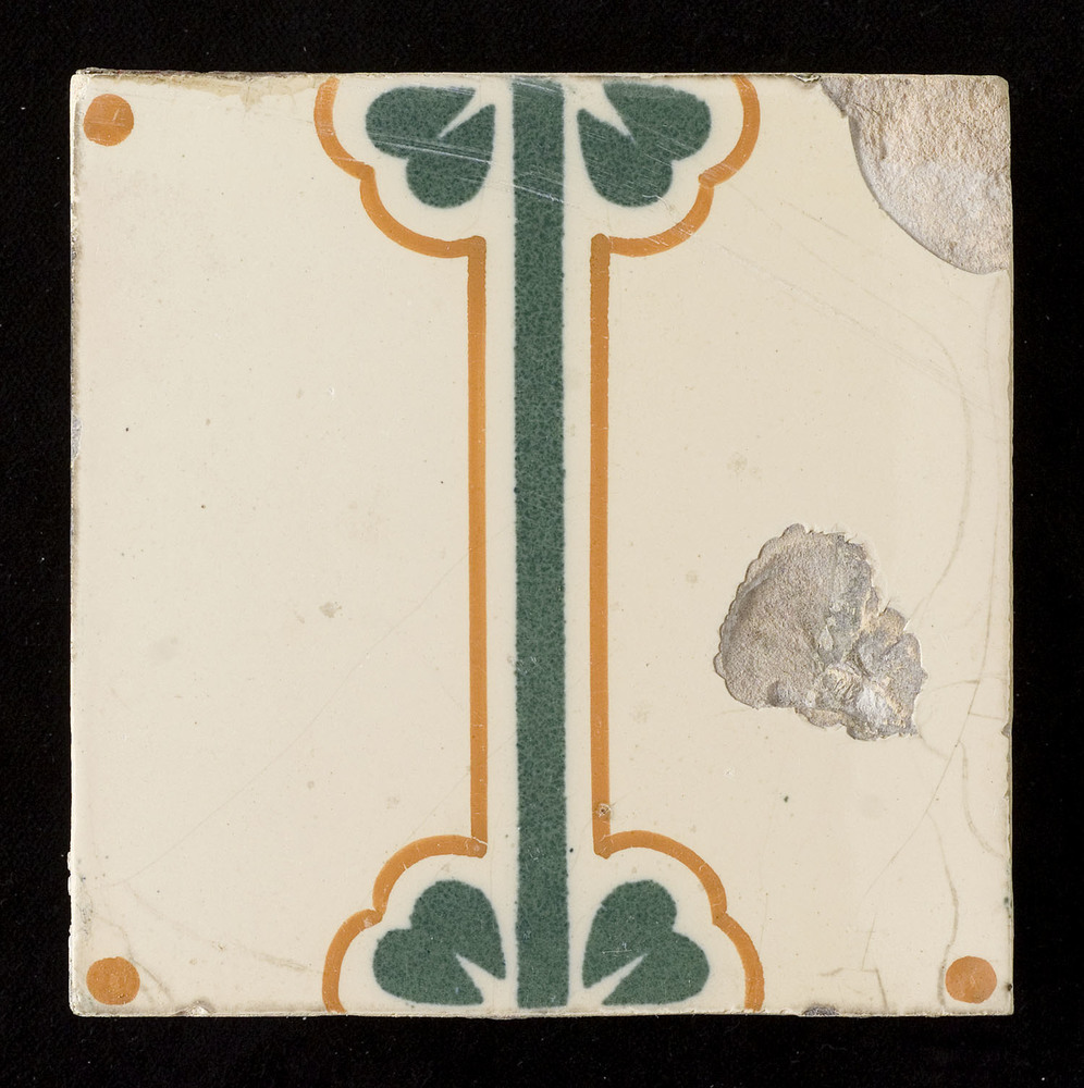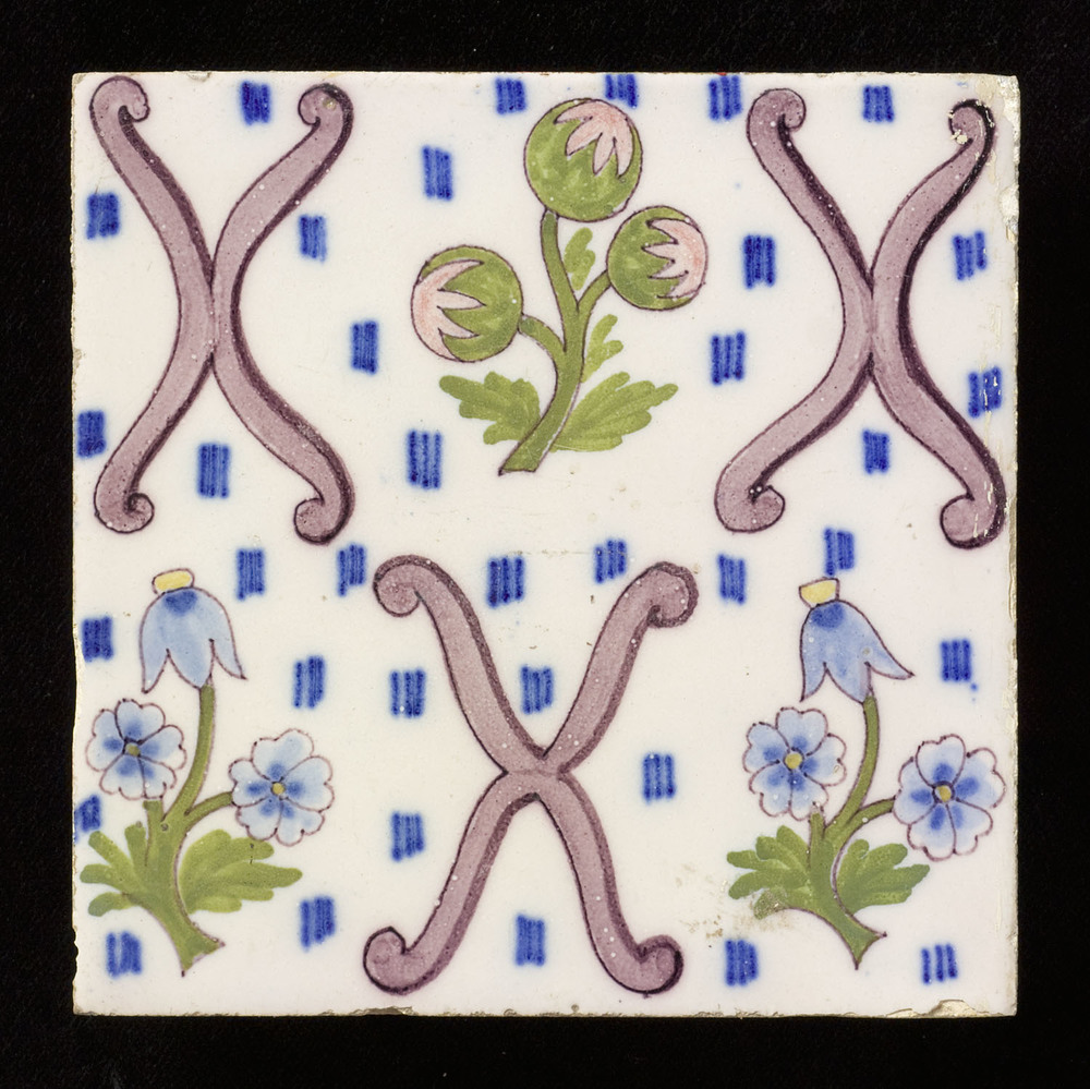 Tegel van tinglazuur, met voorstelling: ornament (de...
