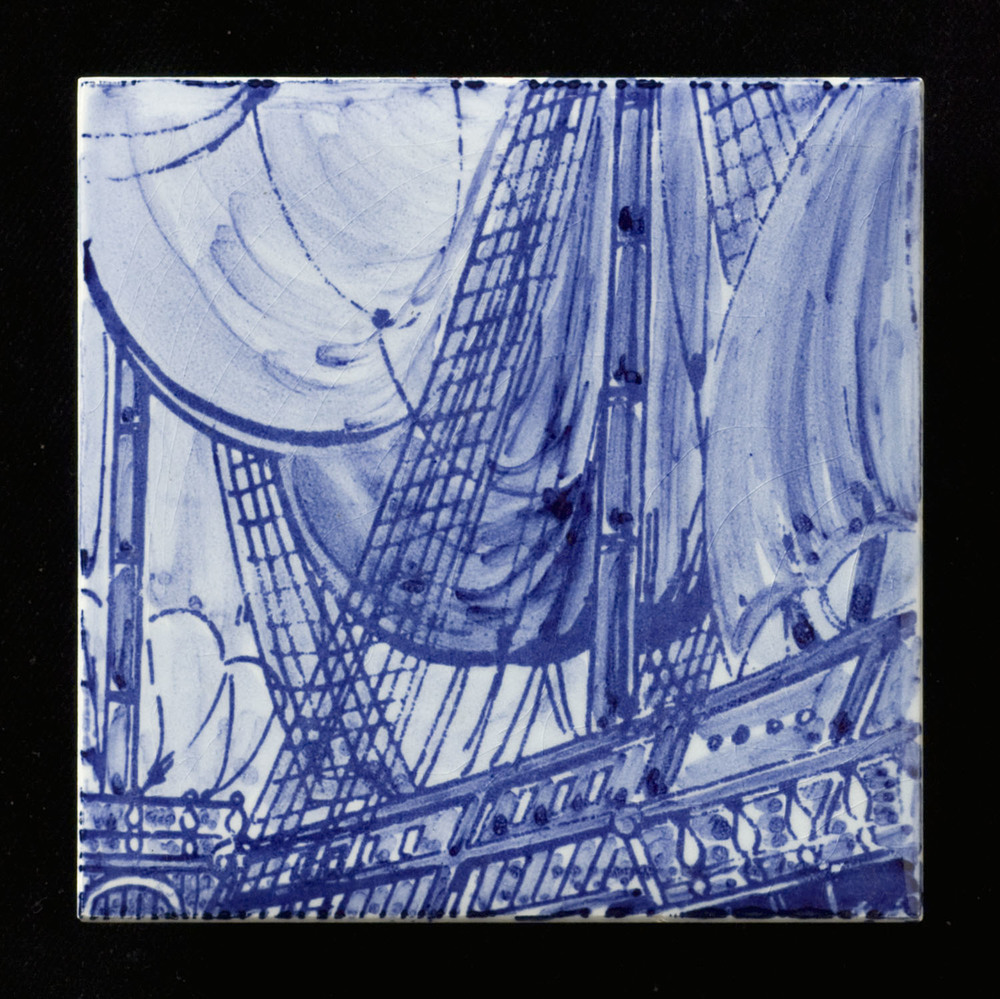Tegeltableau van keramiek, tinglazuur, voorstellende...