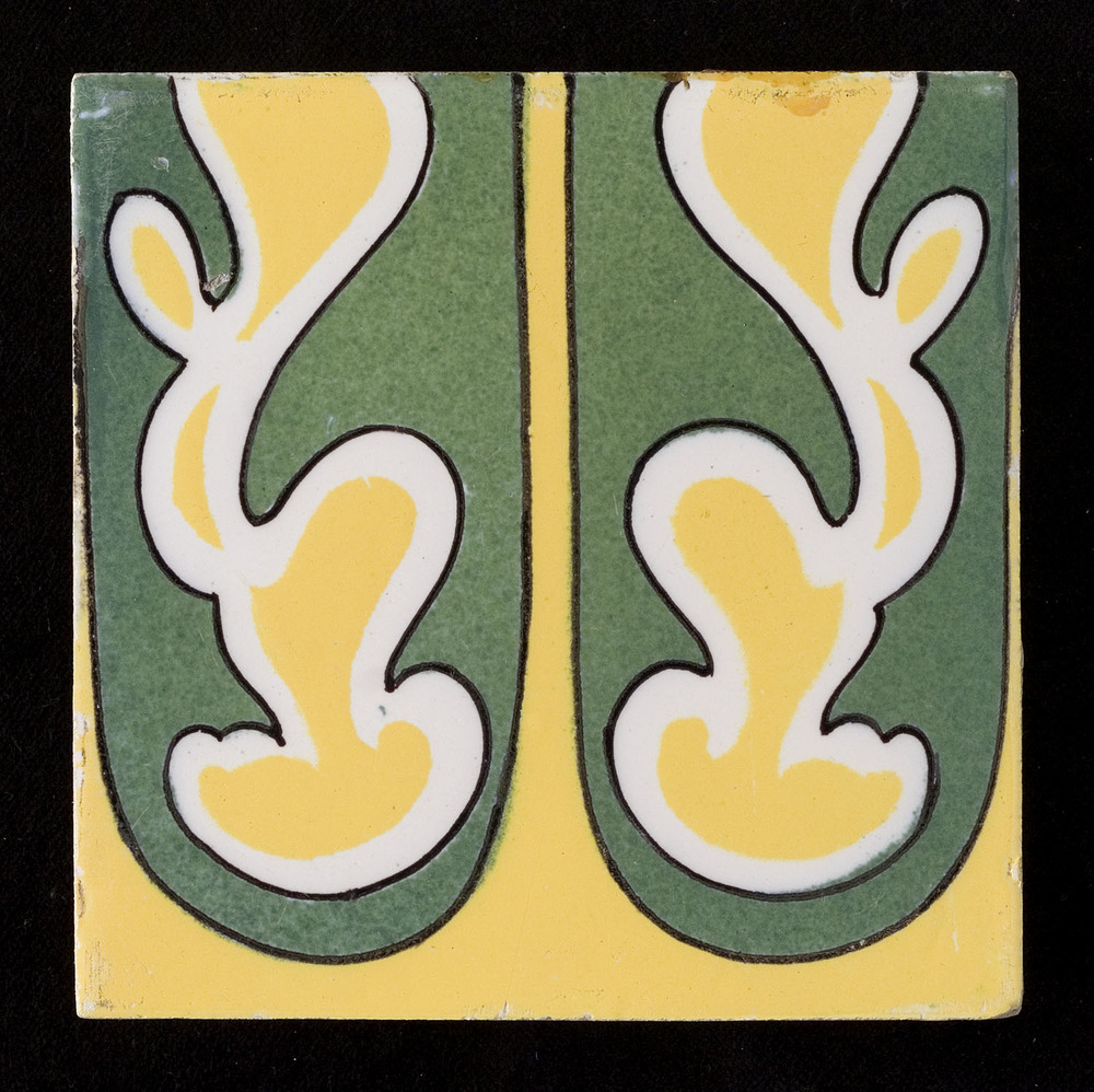 Tegelveld in tinglazuur, voorstellende groene slinge...