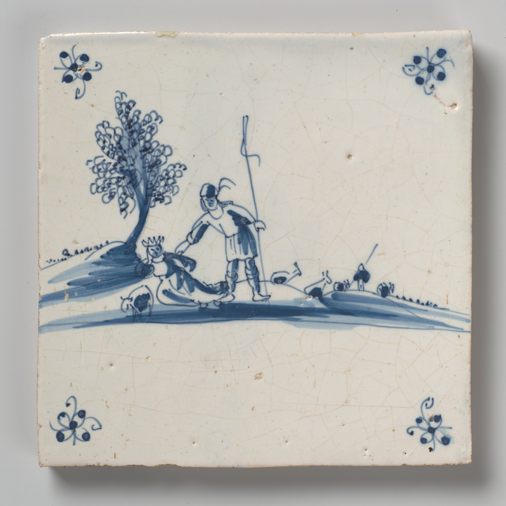 tegel van aardewerk met tinglazuur, voorstellende: h...